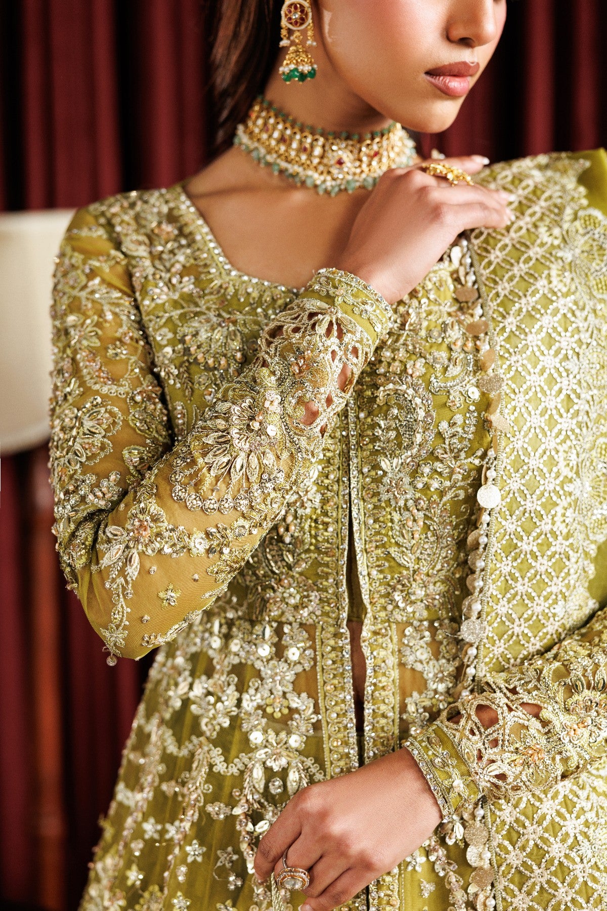 Organza Embroidered Hand Embellished sleeve 26"