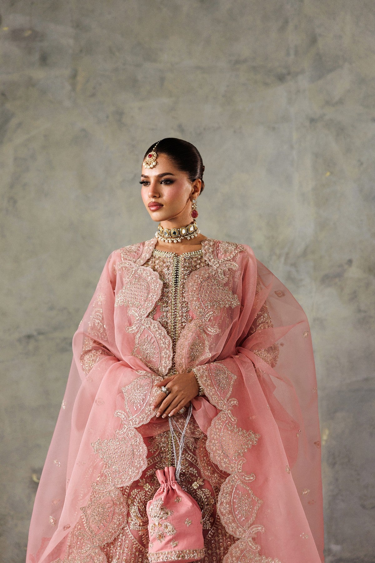Organza Embroidered Hand Embelished Chok Patti