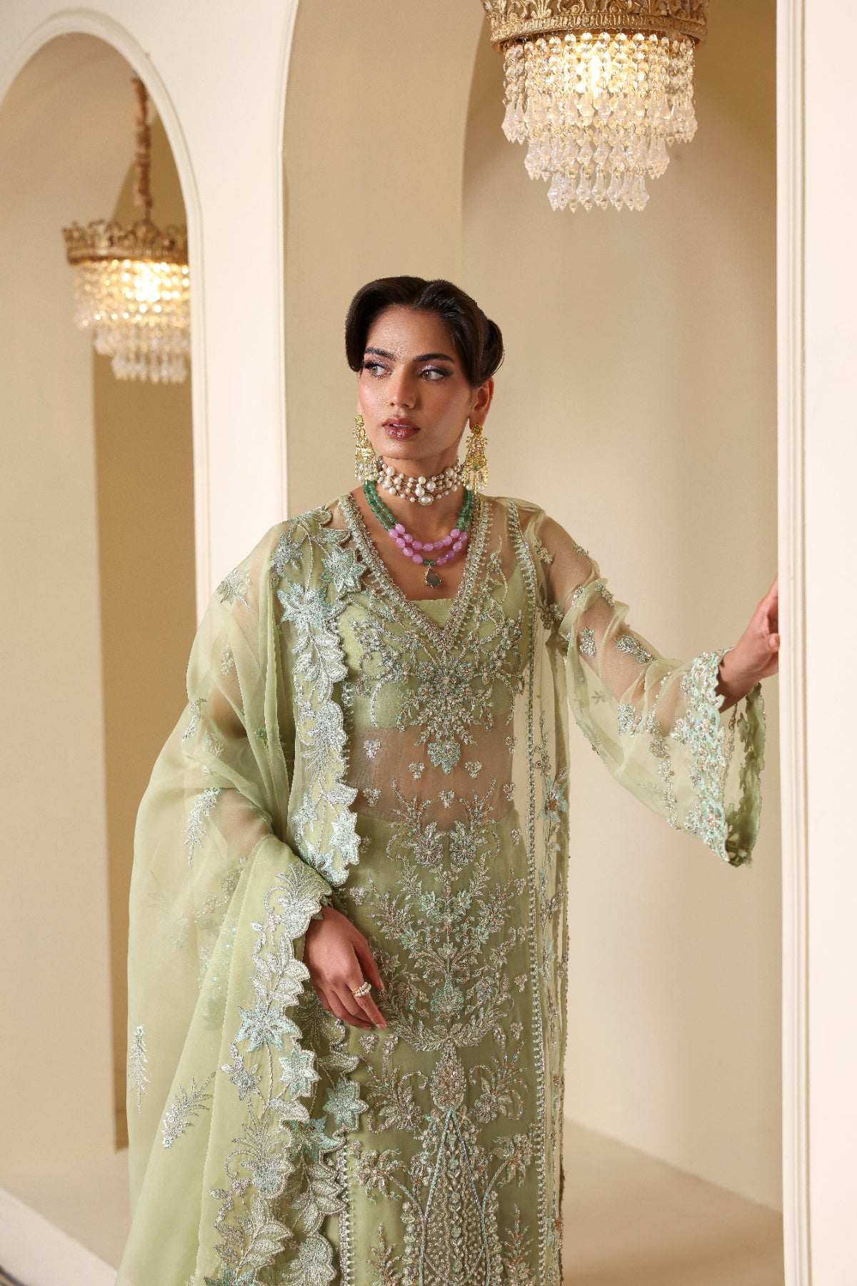 Organza Embroidered Hand Embellished Sleeve 26"