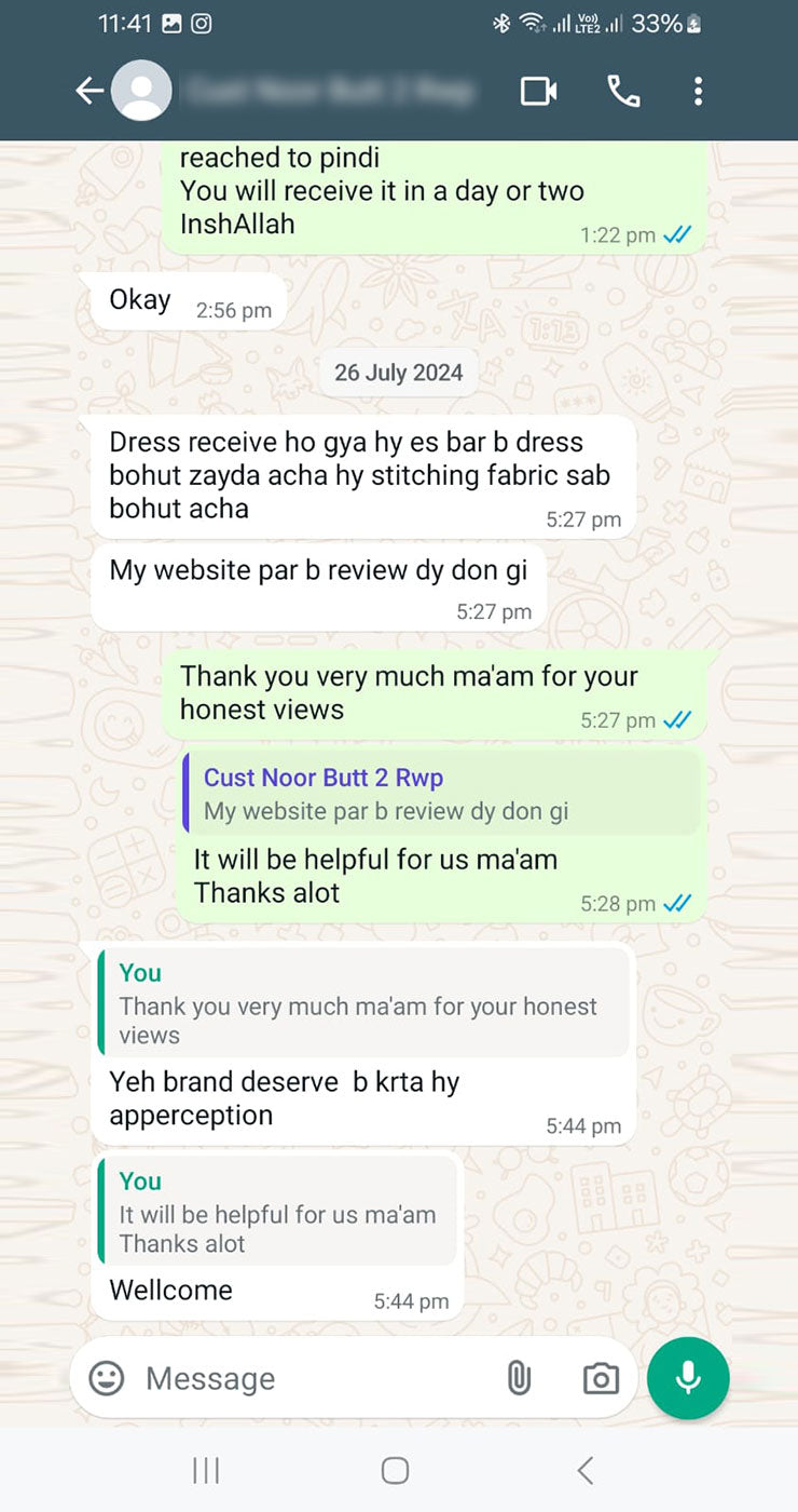 Unstitched orders may take 5 – 7 Working Days (M,T,W,Th,F)