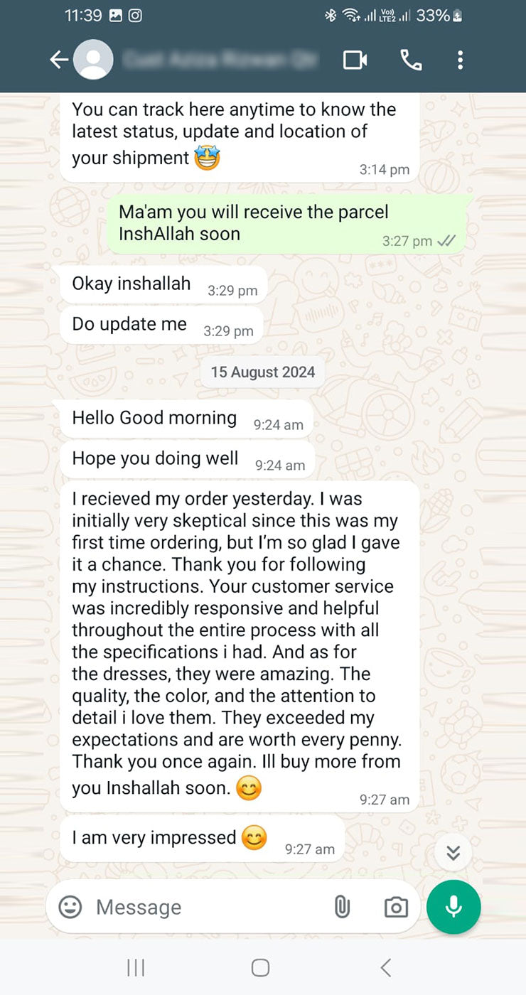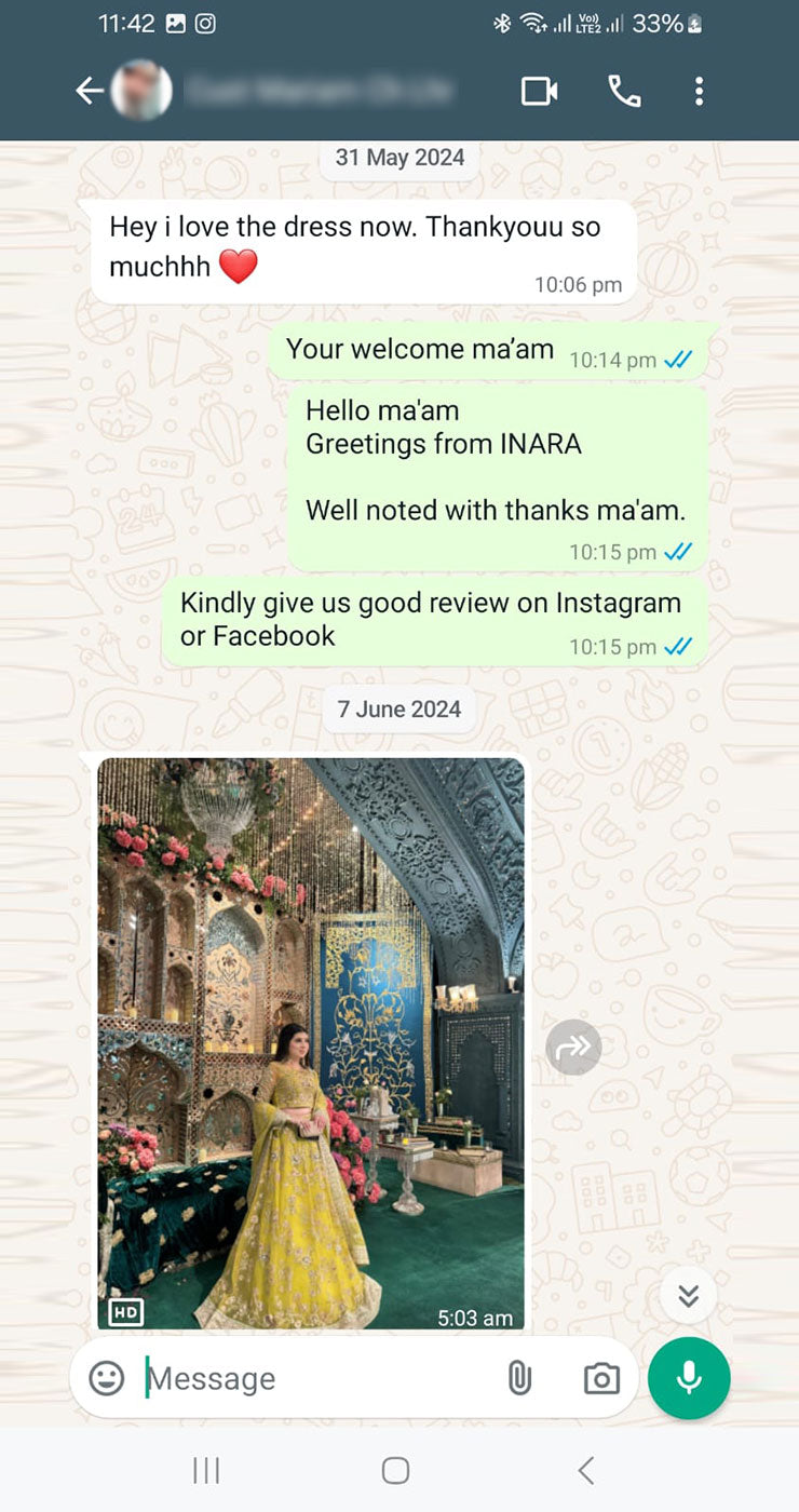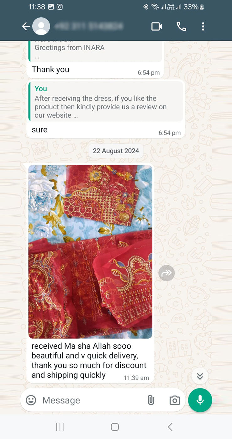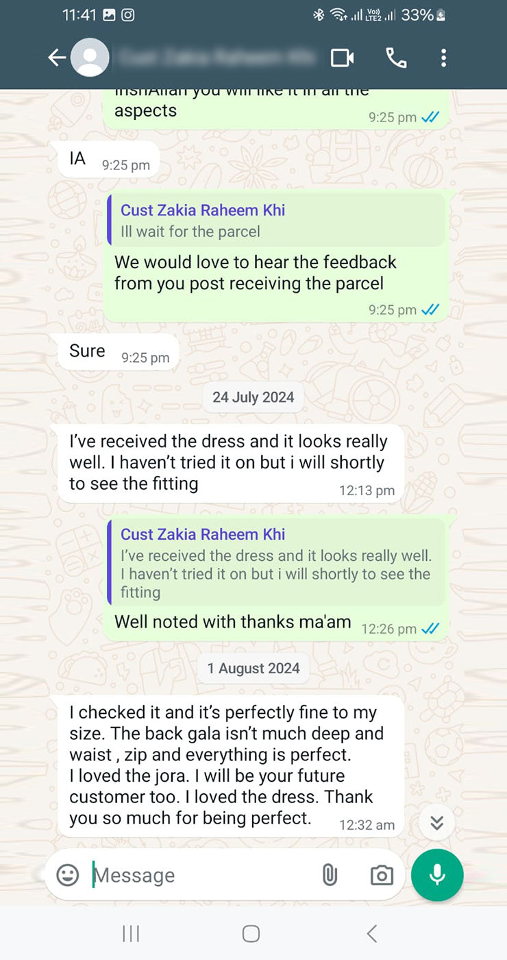 I recive my parcels the dress is perfectly fine in quality. Stitiching is very good size is perfect i just love it perfect dress to wear brother mehndii